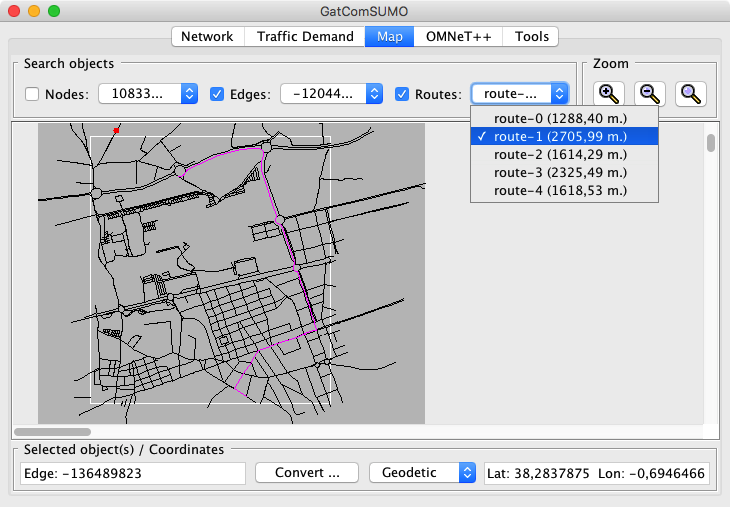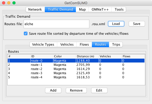 GatcomSUMO visualizes the network and routes easily,